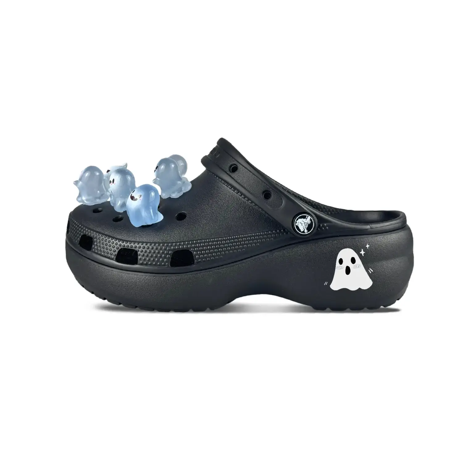 Это оригинальные женские черные сабо Crocs Classic Platform Clog высотой 4,1 см, артикул 206750-001. Эти туфли дополнены аксессуарами, которые подчеркивают их модный вид.