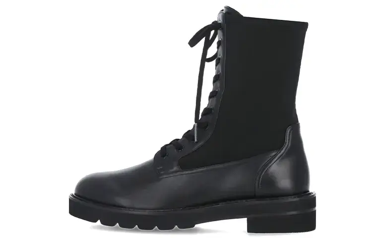 Черный дизайн женских армейских ботинок Stuart Weitzman из кожи находится на переднем крае моды, а простой однотонный стиль отлично подходит для повседневной носки.