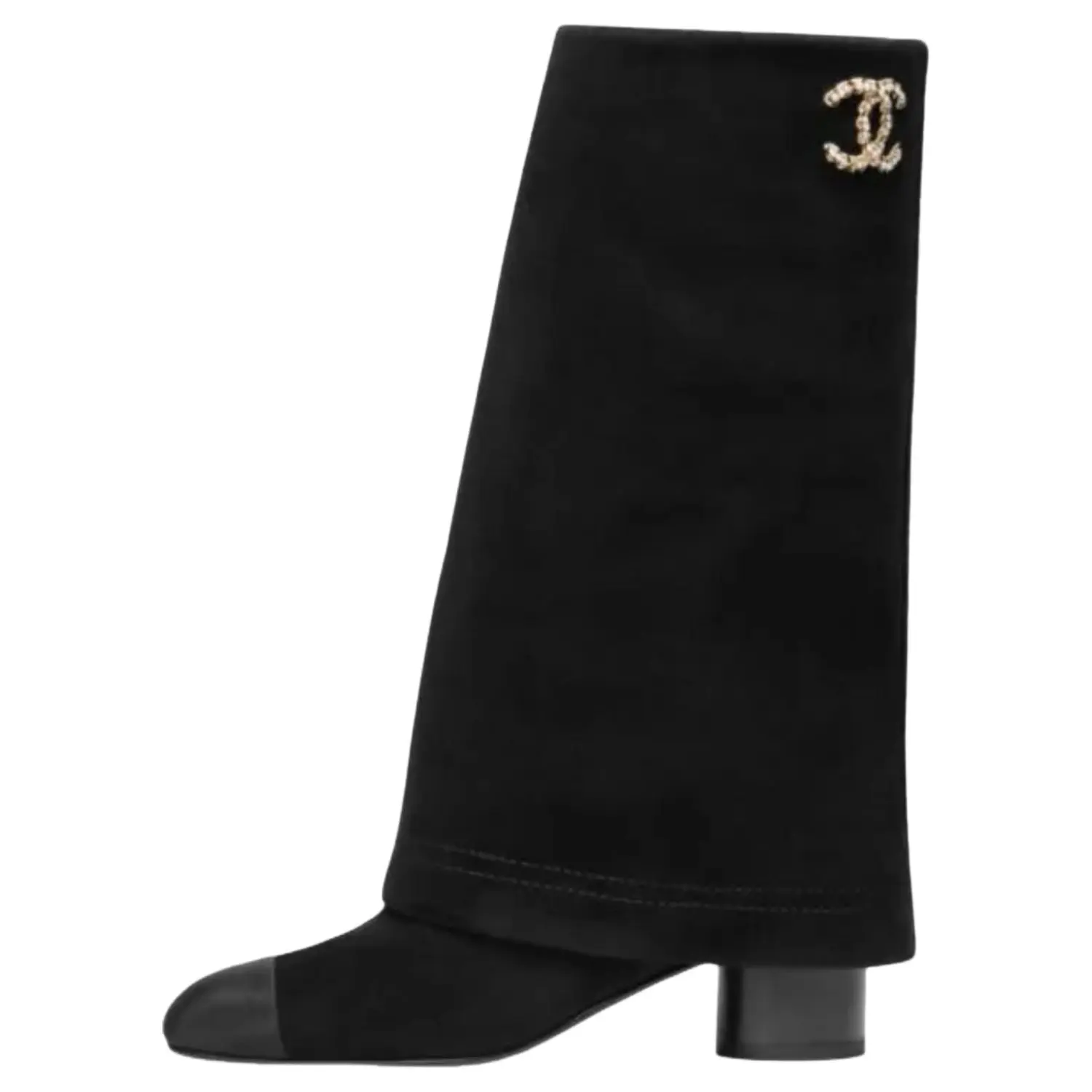CHANEL 25B Сапоги до колена 5 см женские черные