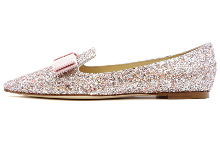 Эти стильные туфли с острым носком выполнены из массива блесток и дополнены женственным бантом спереди и кожаной подошвой.