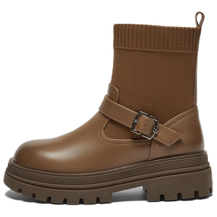 Сапоги-носки из коровьей кожи в британском стиле на толстом каблуке с эластичными ботильонами