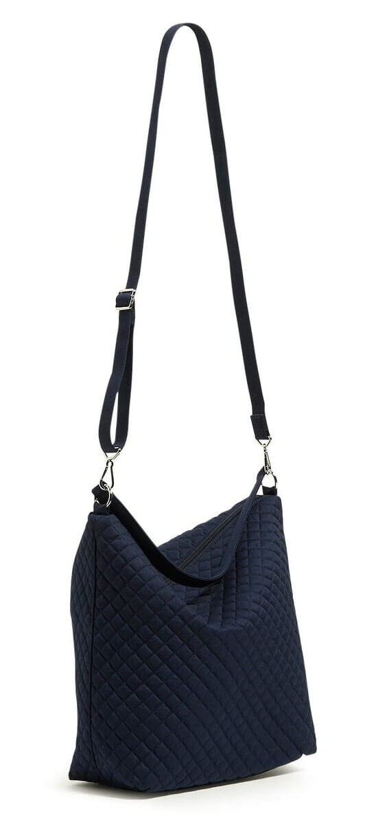 Объемная сумка через плечо Hobo из переработанного хлопка. Снаружи имеется потайной боковой карман на молнии. Внутри есть два накладных кармана и карман на молнии.