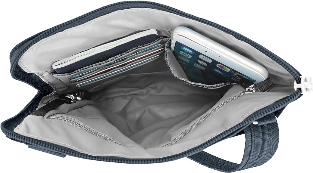 Эта противоугонная сумка идеальна для путешествий, так как имеет тань, устойчивую к воздействию воды и грязи, устойчивую к порезам конструкцию, запирающиеся отделения, карманы с RFID-блокировкой и фиксирующиеся ремни для защиты ваших вещей.