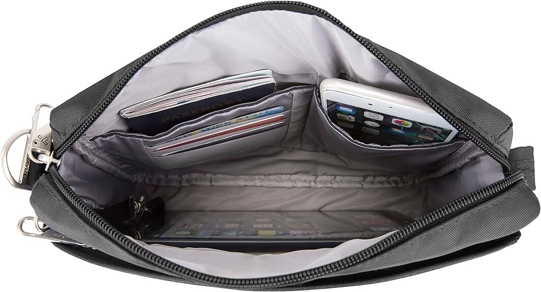 Полная защита от кражи, включая запирающиеся отделения, устойчивую к порезам конструкцию и устойчивый к порезам регулируемый ремень.