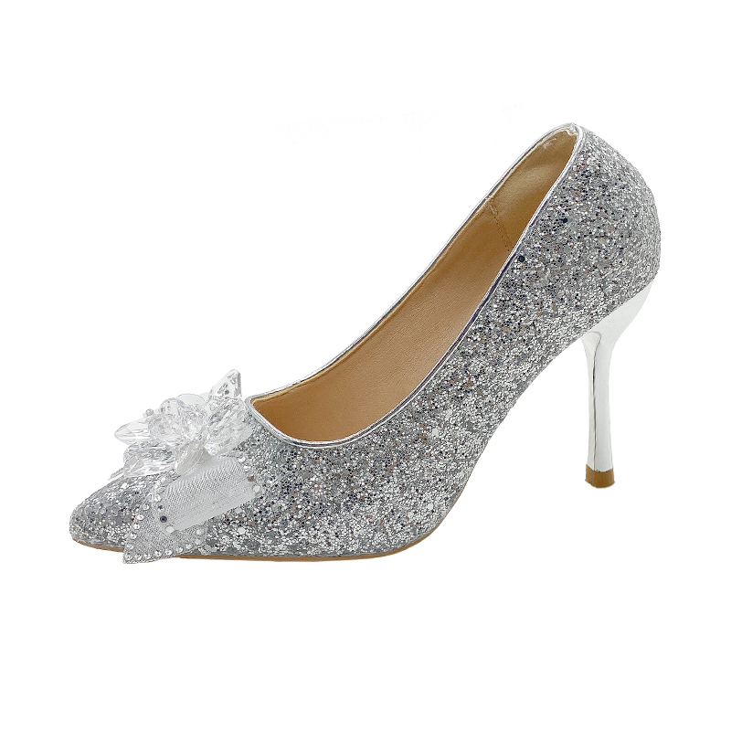 Туфли Slim Heel High Heels Women's Gift Box Set Take the Qin, Silver 6Cm