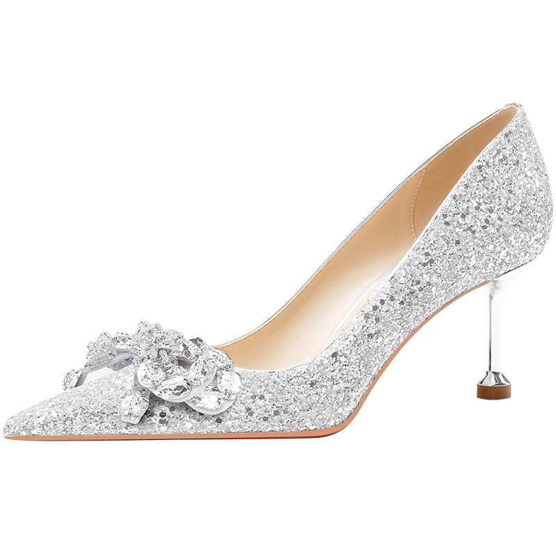 Женские туфли на тонком каблуке, серебристые Lan Miao, Silver