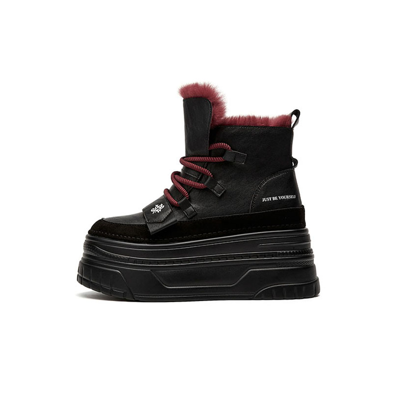 Женские зимние ботинки DAPHNE на платформе, черно-красный