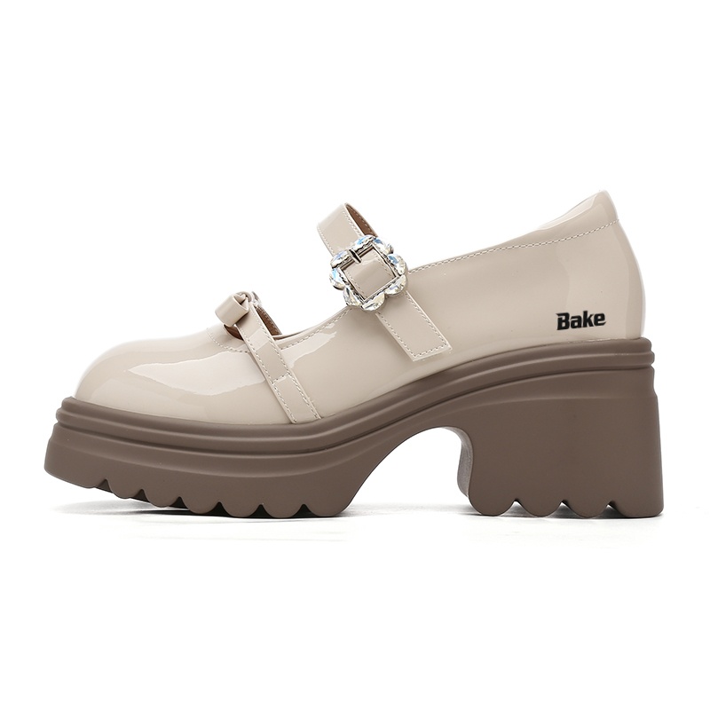Модные туфли Мэри Джейн на массивном каблуке BAKE, Beige