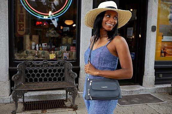 Благодаря удобному внешнему карману для бумажника и встроенной RFID-защите, оригинальная сумка через плечо позволит чувствовать себя уверенно, куда бы вы ни отправились.