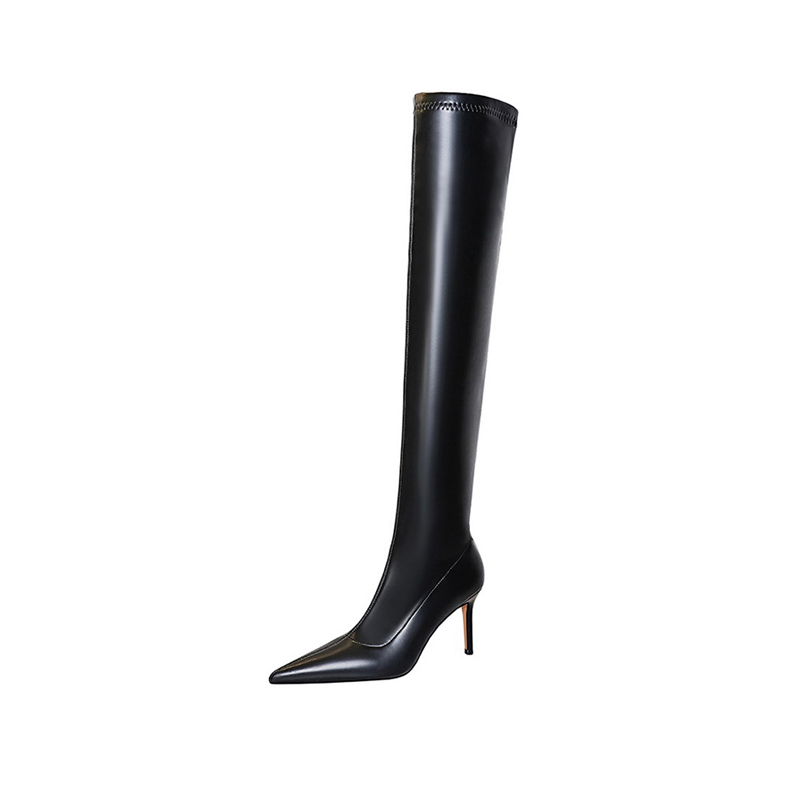 BIGTREE Сапоги выше колена 8,5 см женские черные