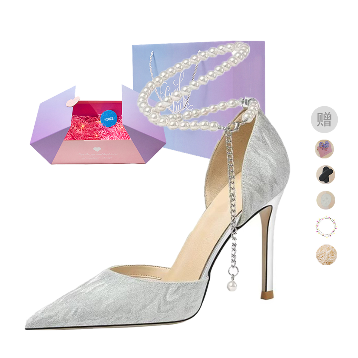 Женские туфли на высоком каблуке, серебристые NTOZE, Silver