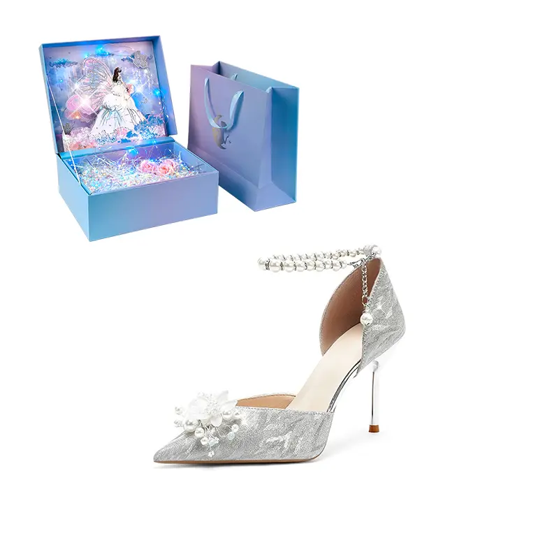 WUGUNIANG Туфли Romantic Versatile Elegance Elegant Slim Heel High Heels Women's Silver