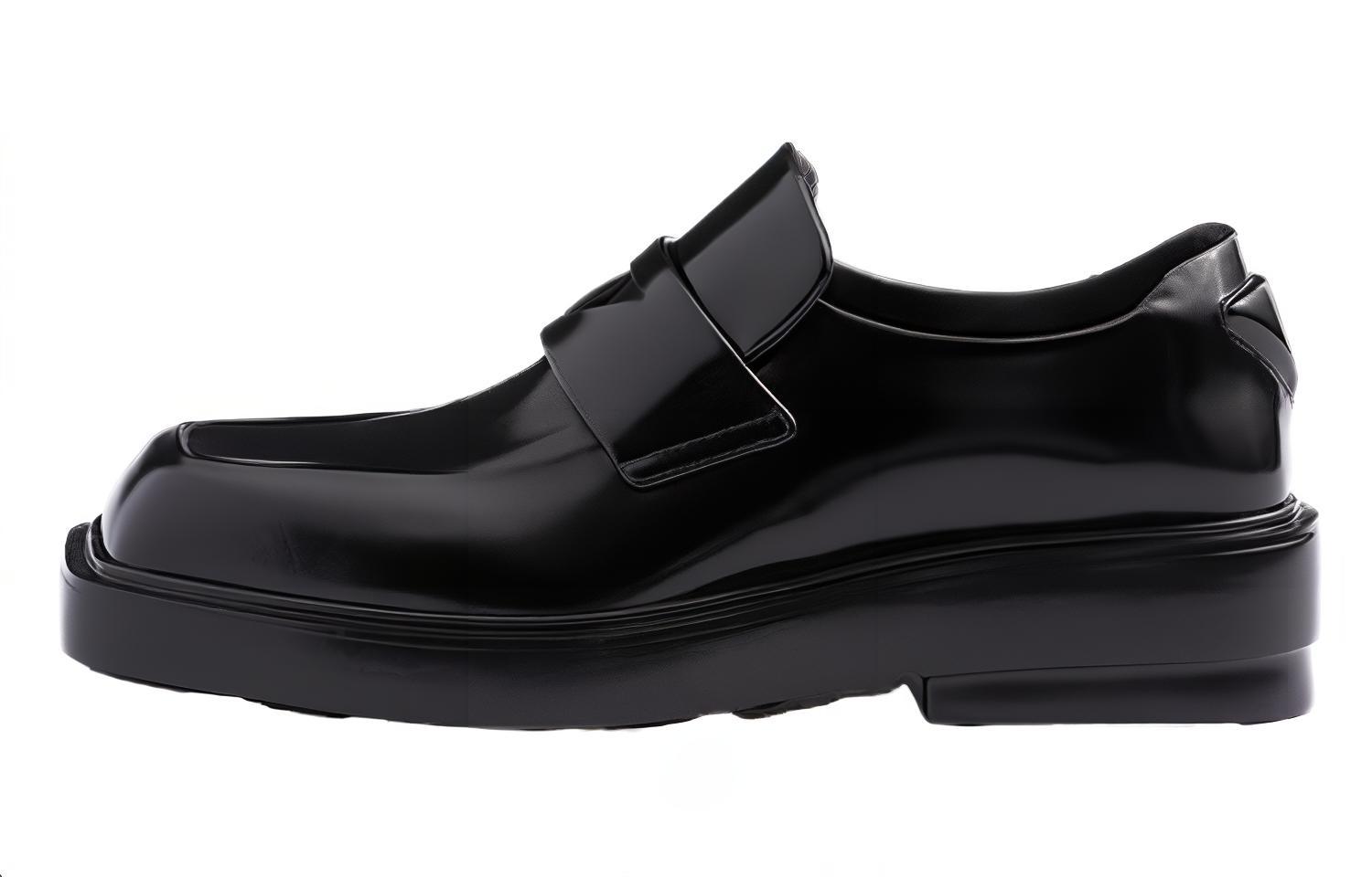Кожаные лоферы с треугольными нашивками PRADA, Black