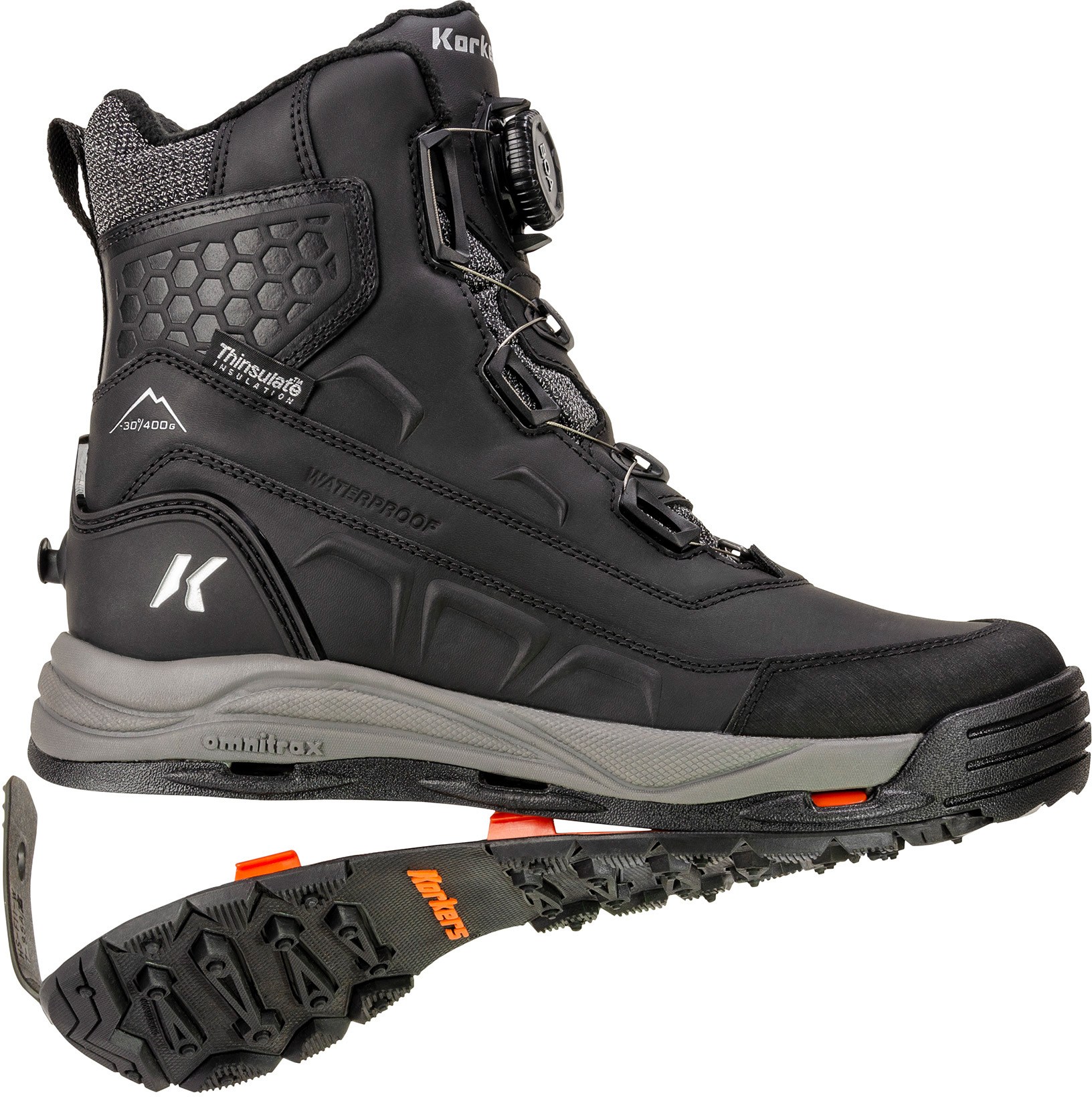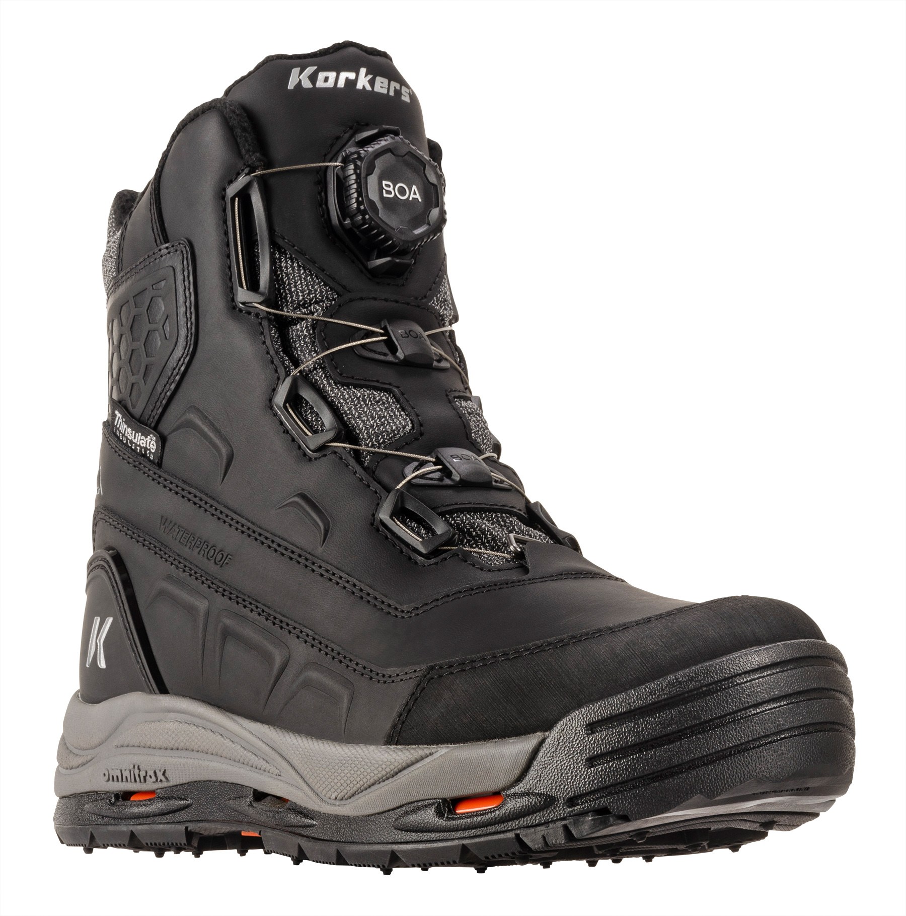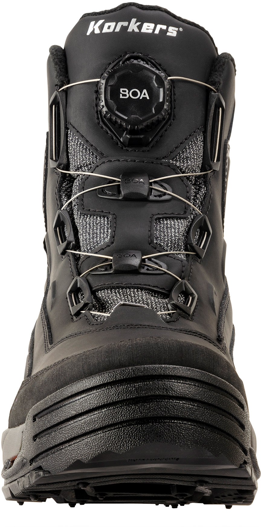 Водонепроницаемые, утепленные и удобные зимние ботинки Korkers Snowmageddon BOA на гибкой платформе оснащены системой сменной подошвы, которая позволяет настроить уровень сцепления на лету.