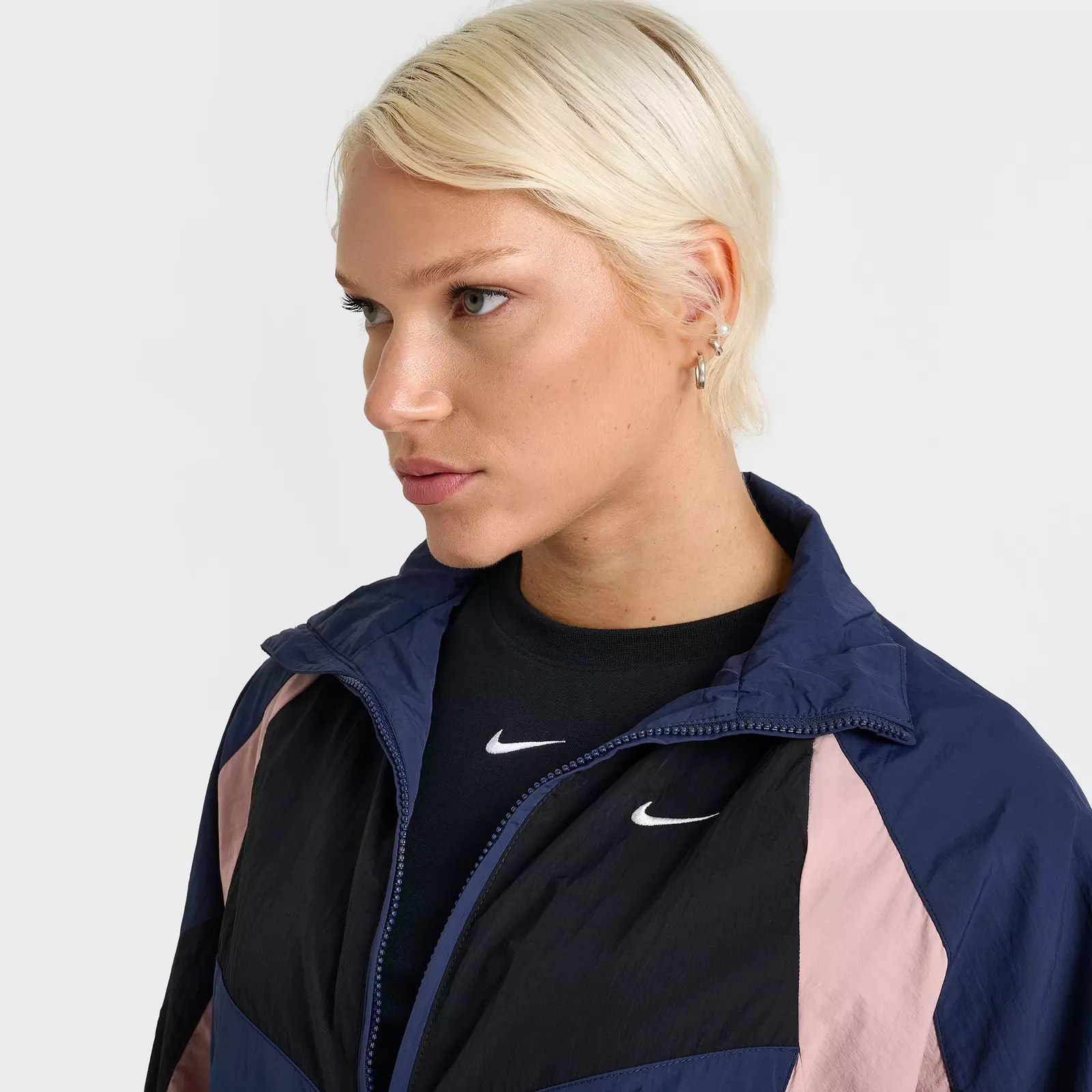 Добавьте немного винтажного очарования в свой спортивный образ с этой женской курткой Nike Sportswear Oversize. Эта куртка-ветровка из плотной тафты дополнена влагоотводящей сетчатой подкладкой, водоотталкивающим покрытием и защитой от ультрафиолета, структурированным воротником с высокой посадкой и цветными деталями с фирменным логотипом Swoosh — эффектный ретро-образ.