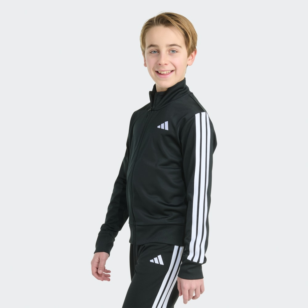 Эта куртка на молнии спереди станет незаменимым элементом одежды для школьных дней и тренировок. Она выполнена в классическом стиле adidas. Мягкий трикотажный крой дополнен прорезными карманами спереди и фирменными тремя полосками на рукавах.