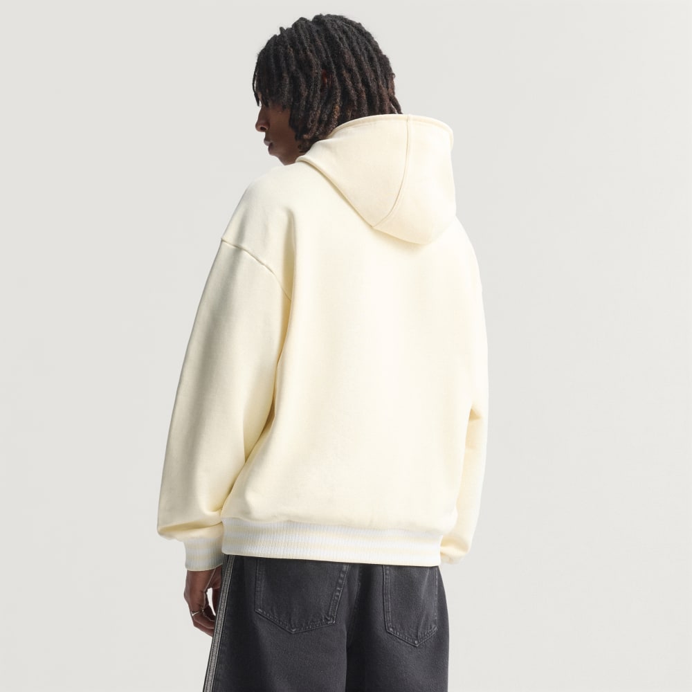 Издалека эта толстовка adidas может показаться скромной. Но детали совсем не такие. Крупный логотип adidas занимает всю грудь, переходя на рукава. Ребристые манжеты дополнены интегрированными контрастными тремя полосками, которые подчеркивают объём свободного кроя.
