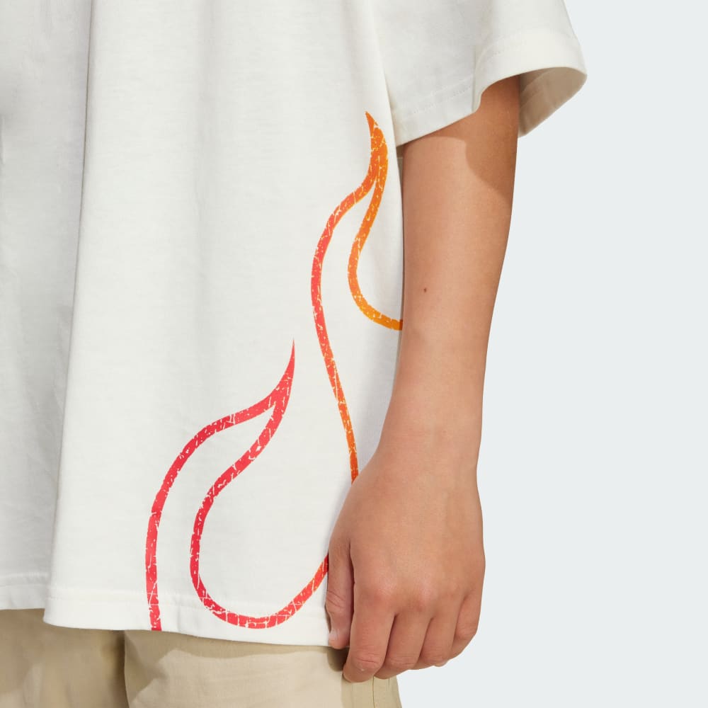 Эта юниорская футболка adidas воплощает в себе скейт-культуру 90-х — начала 00-х и эстетику гранжа. Пламя — популярный символ бунтарского духа той эпохи — добавляет смелости. Свободный крой отлично сочетается с футболкой с длинным рукавом, создавая непринужденный образ. Дополните образ рваными джинсами и любимыми кроссовками.