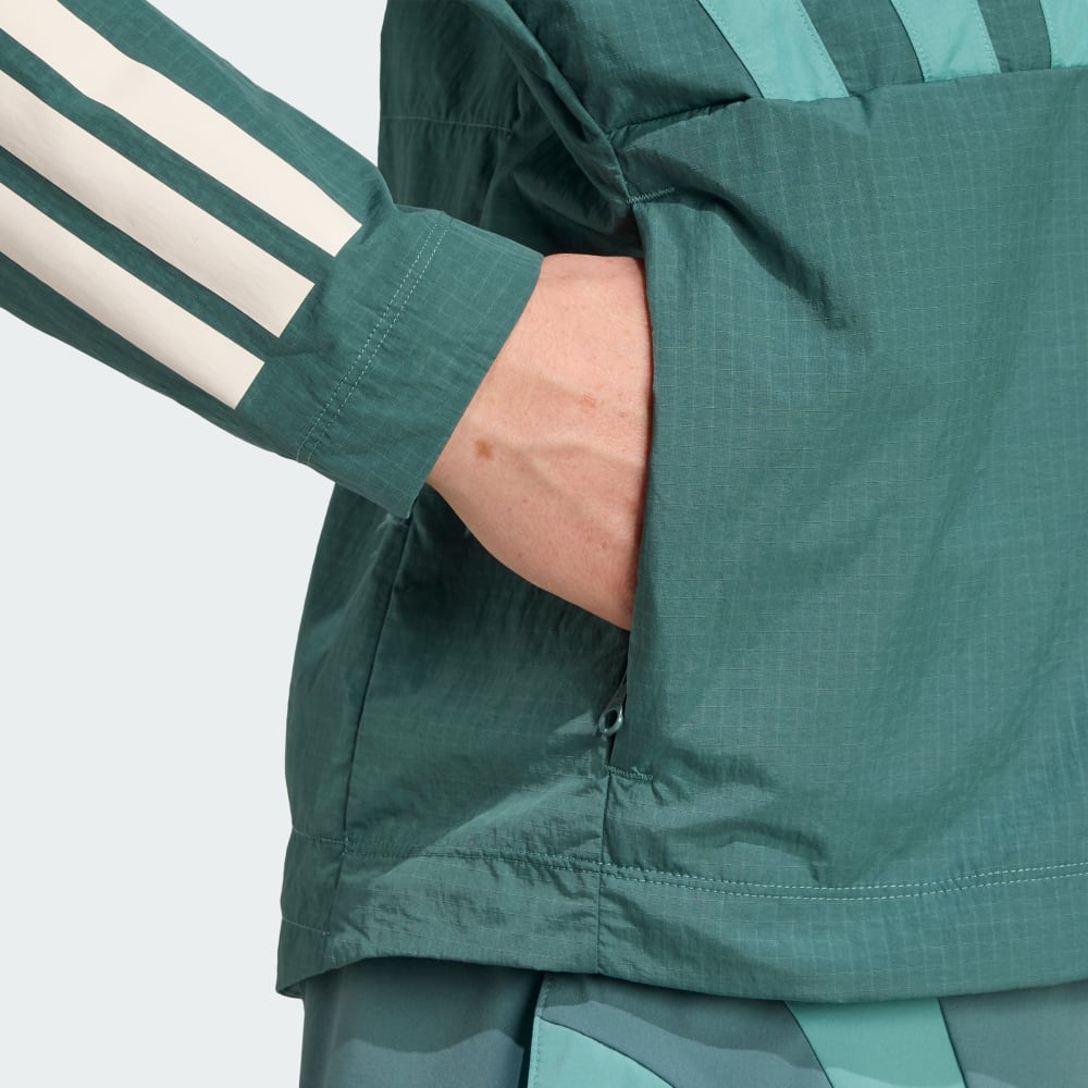 Вдохновитесь духом прошлого, бегая в настоящем в этой беговой куртке adidas Adizero. Лёгкая ткань рипстоп с вентиляционными вставками под мышками обеспечивает универсальность для разминки и заминки. Светоотражающие детали повышают видимость в условиях слабого освещения, а прочная водоотталкивающая пропитка защищает от влаги.