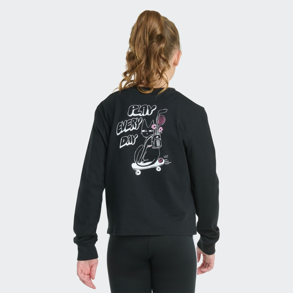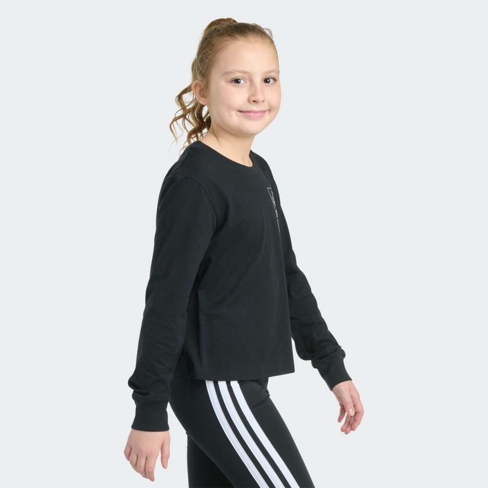 Выразите себя. Эта женская футболка adidas с длинным рукавом украшена игривой графикой спереди. Она создана для повседневного комфорта благодаря мягкому хлопковому крою и классическому крою.