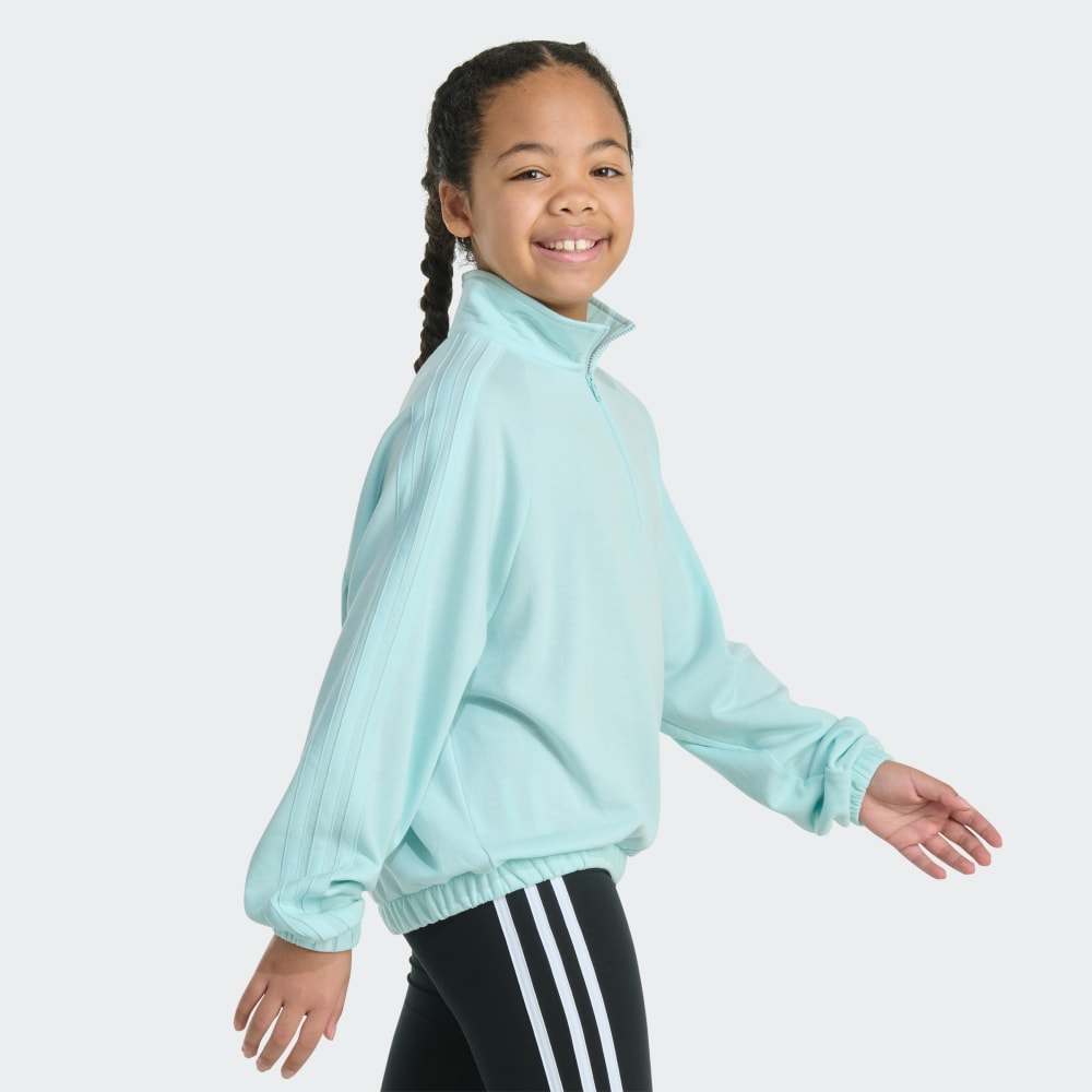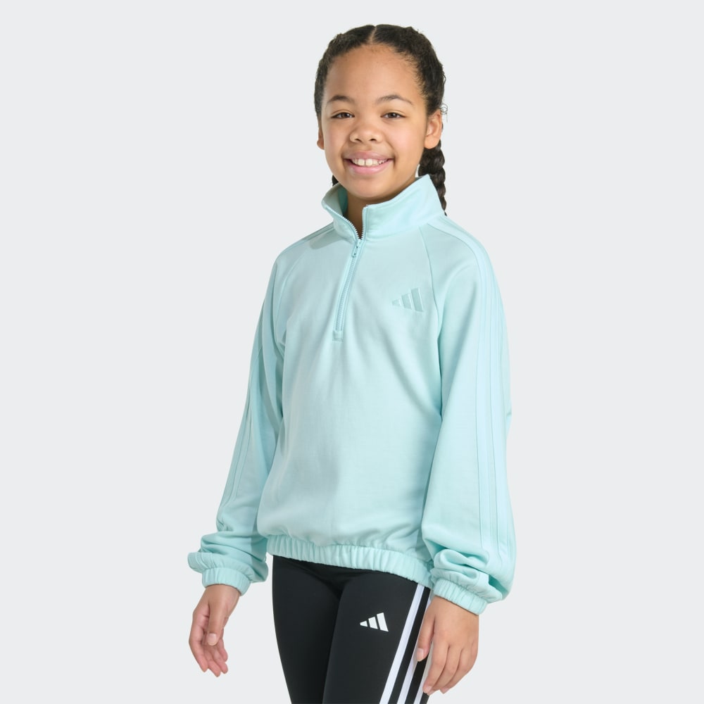 Этот топ для девочек станет её любимым нарядом для прохладного утра или ленивых выходных. Молния позволяет легко регулировать длину и снимать/надевать его, когда погода меняется. Три полоски в тон и вышитый логотип отражают её стиль в стиле adidas.