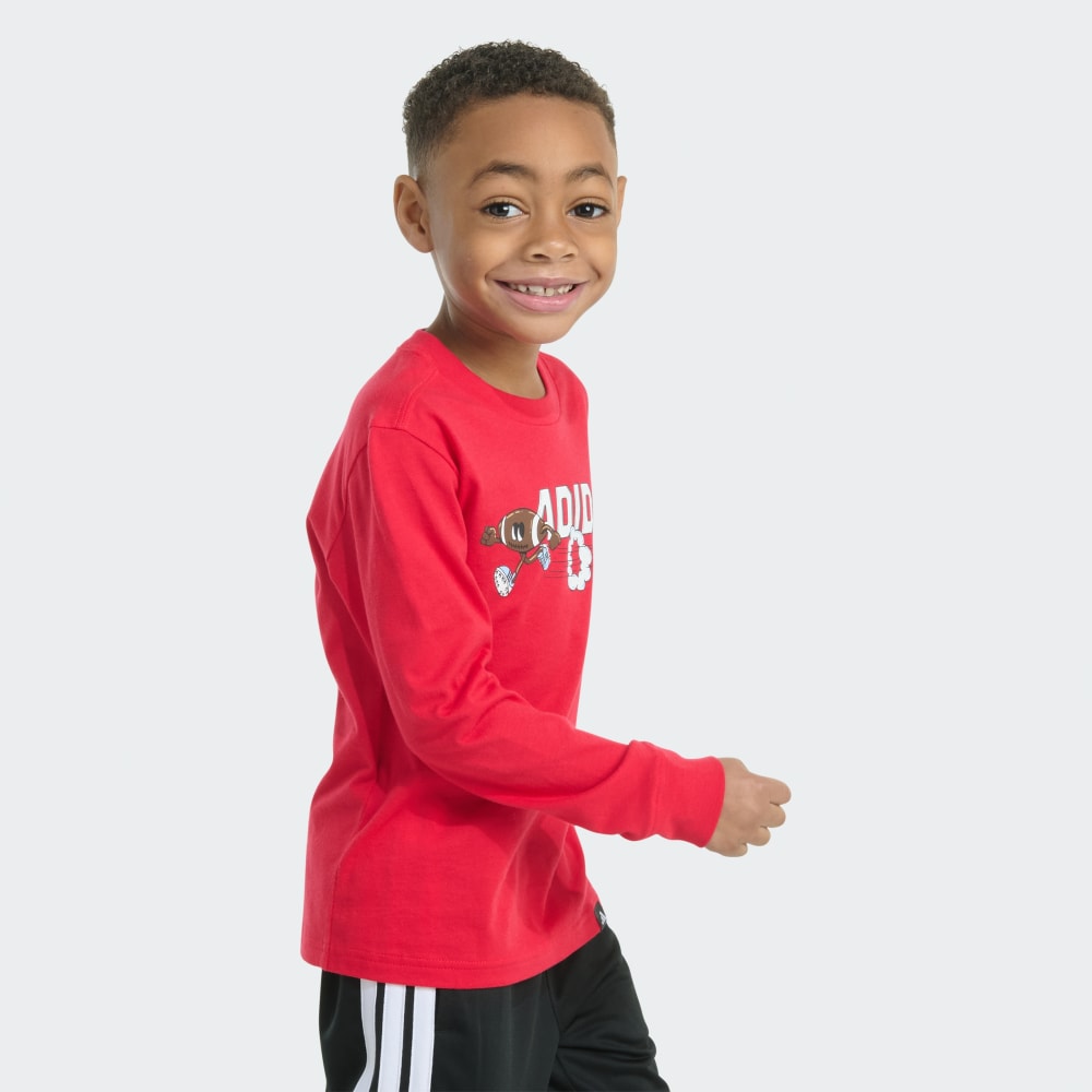 Спортивный режим: вкл. Эта футболка adidas для мальчиков — повседневная футболка с длинным рукавом для детей, любящих футбол. Мягкая хлопковая ткань украшена спортивной графикой и имеет классический крой.