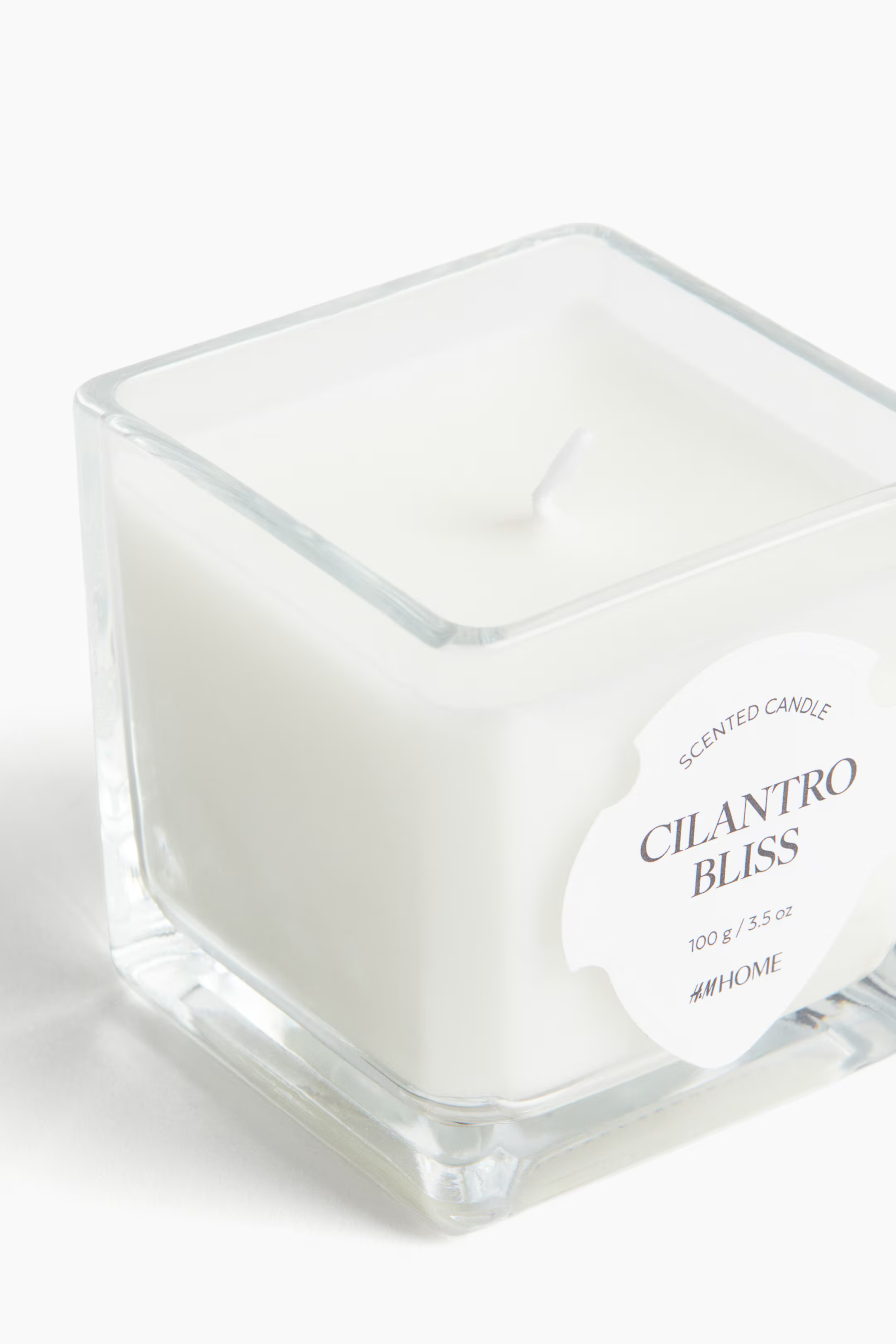Ароматическая свеча в квадратном стеклянном контейнере. Время горения 15 часов.