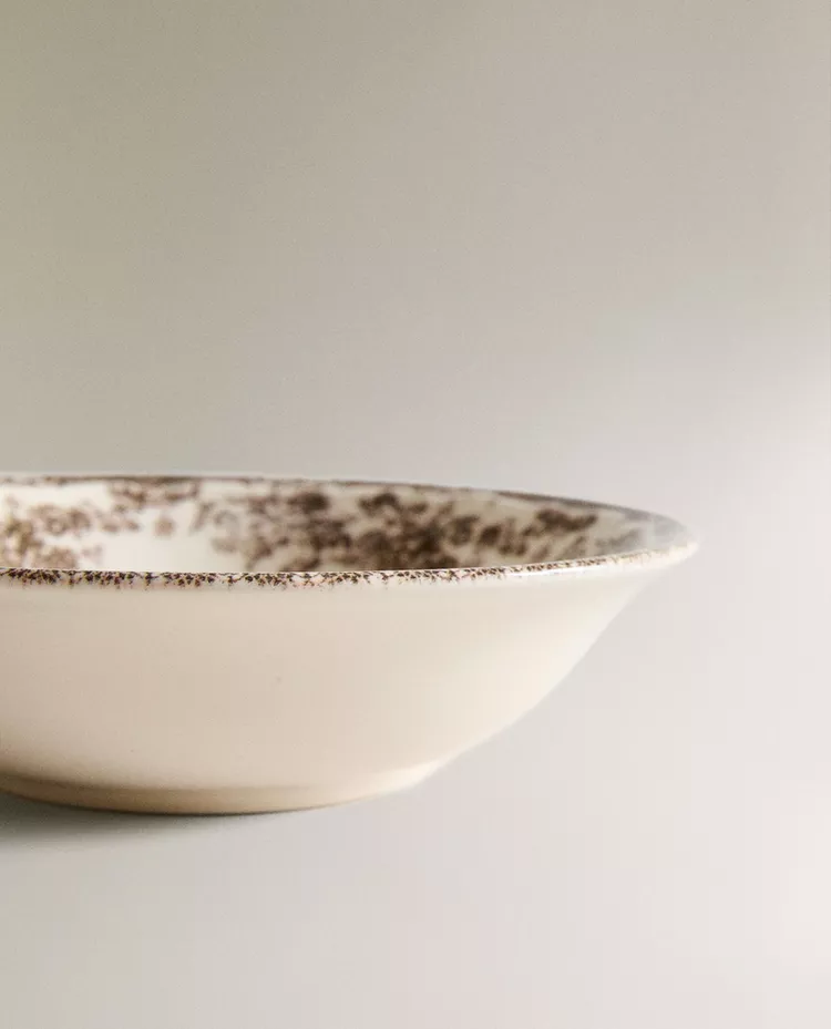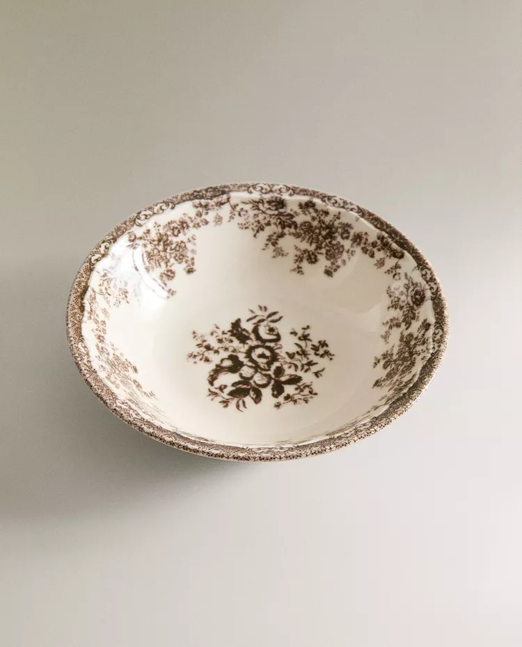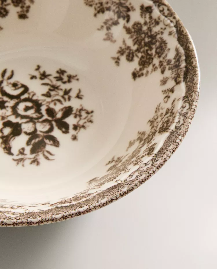Изящная глиняная чаша, украшенная цветочным принтом.