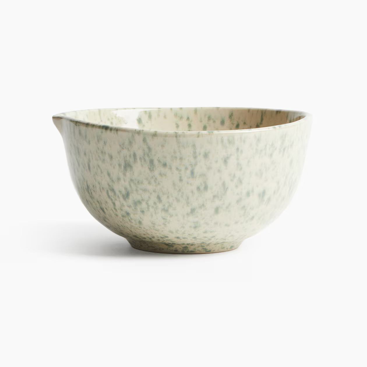 Чаша из керамогранита с пятнистой отделкой, которая придает каждому изделию уникальный вид. Поверхность покрыта глянцевой глазурью для придания элегантности. Чаша имеет широкое дно для устойчивости и практичный носик, что делает ее идеальной для смешивания и переливания теста. Прочный материал делает его отличным для приготовления теста, а также подходит для хранения кухонной утвари, когда она не используется.