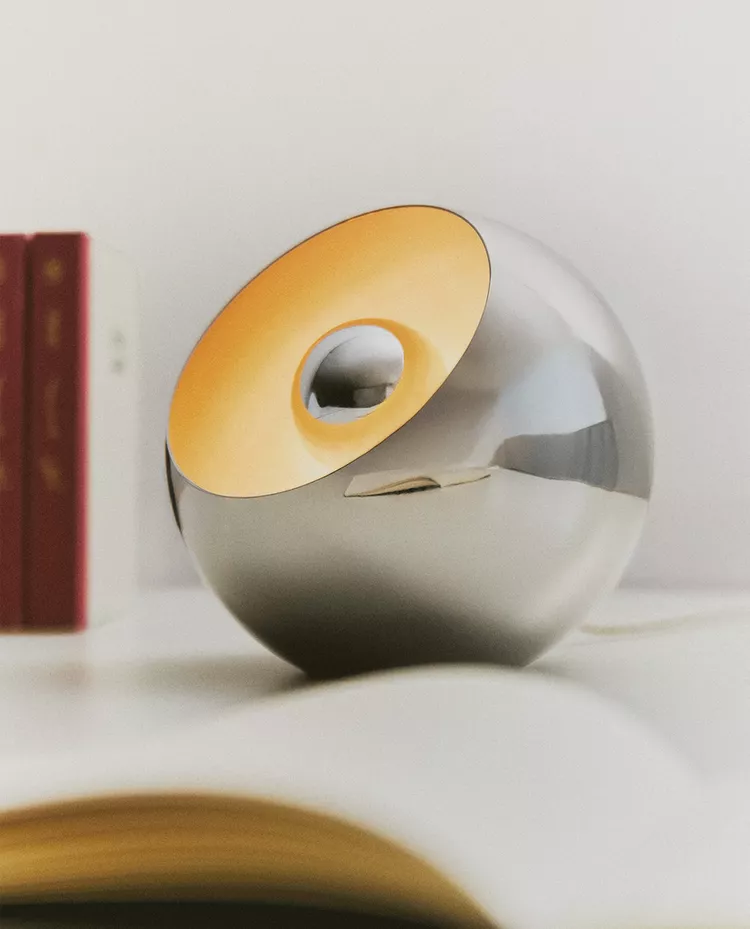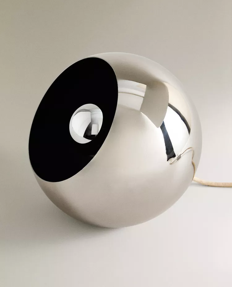 Металлическая настольная лампа в форме полусферы.