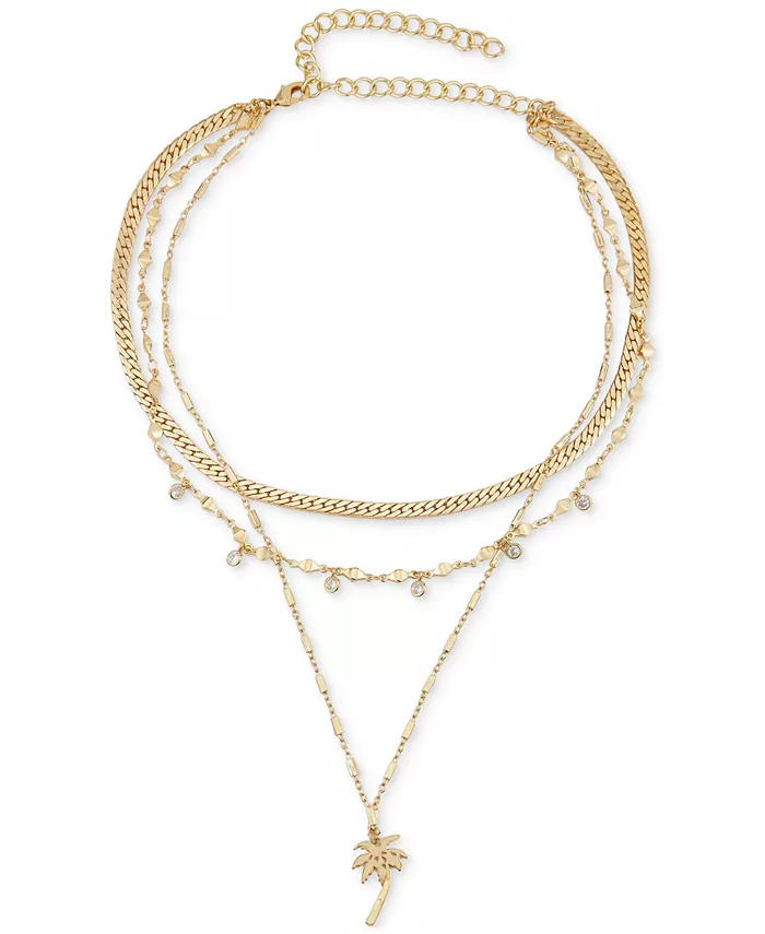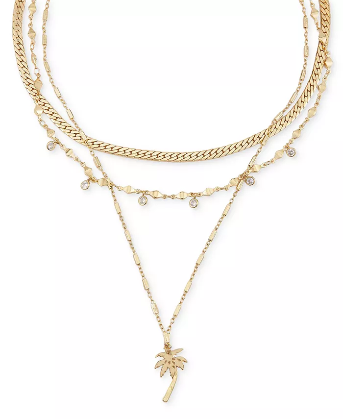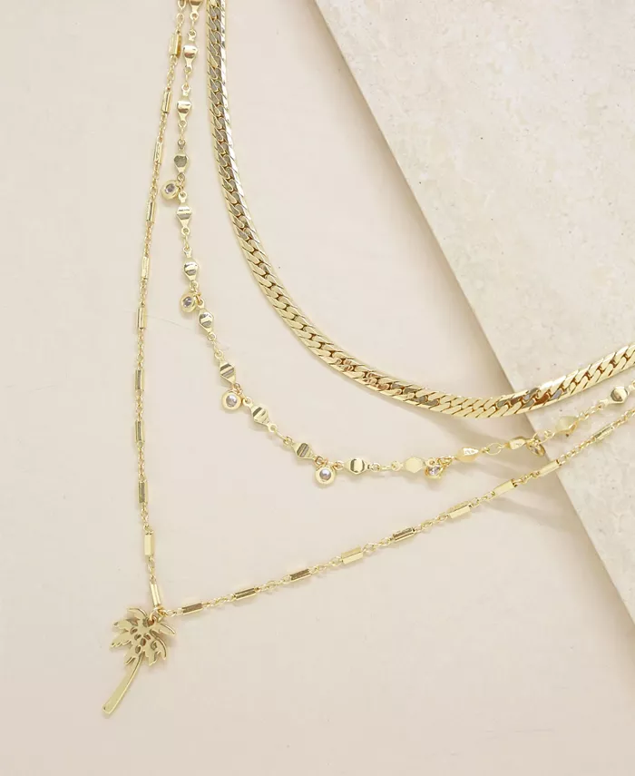 Добавьте блеска в свой образ, готовый к отпуску, с этим многорядным ожерельем с подвеской в ​​виде пальмы и сверкающими кубическими циркониями.