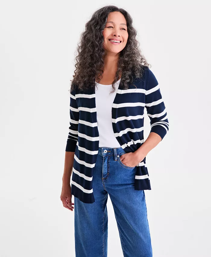 Создавайте бесконечное количество образов, начиная с этого классического кардигана от Style & Co, который имеет универсальный открытый перед.