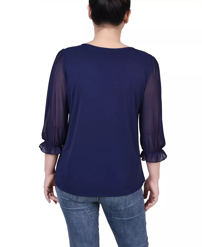 Миниатюрный сетчатый топ с рукавами 3/4 NY Collection, синий