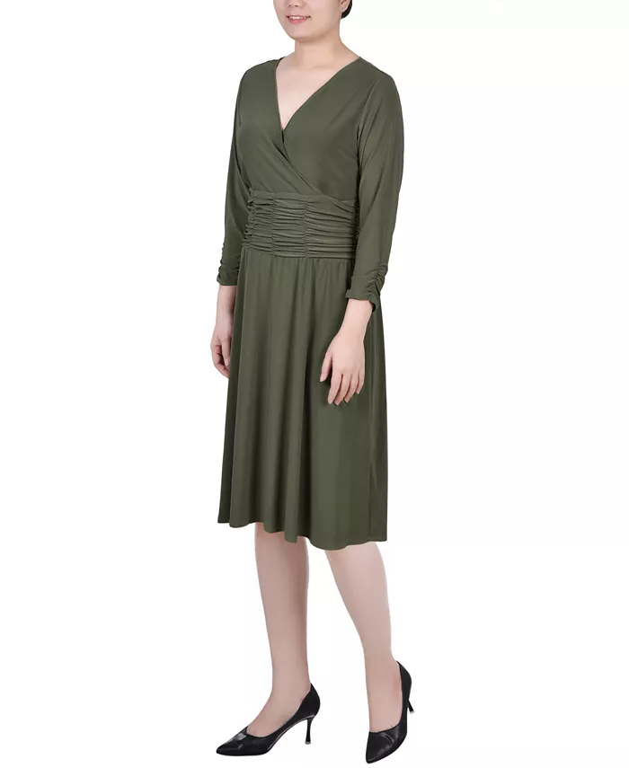 Женское платье А-силуэта с рюшами NY Collection, зеленый