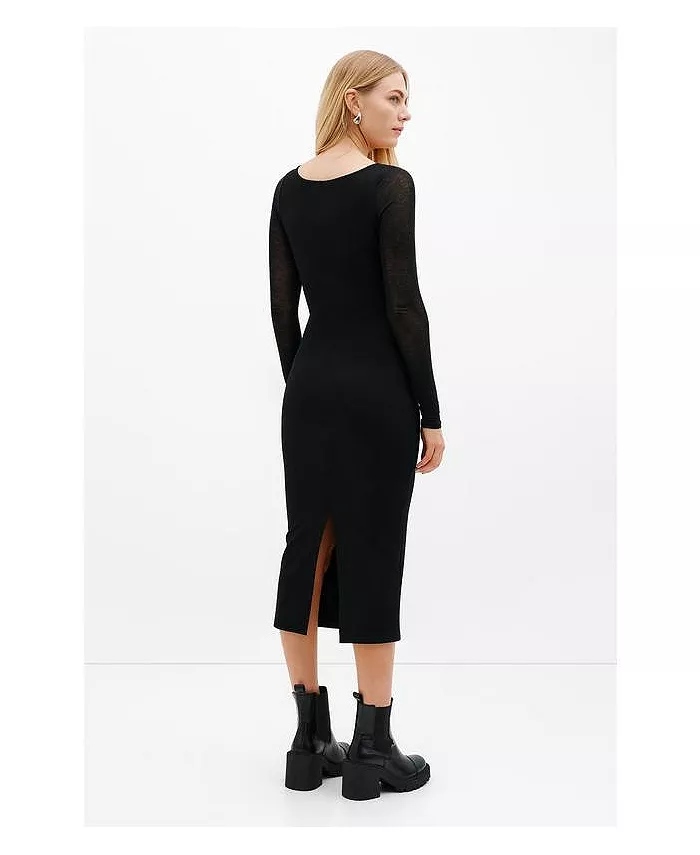 Приталенный, средней эластичности Импортный Очень длинные прозрачные рукава Квадратный вырез Разработано в Нью-Йорке | Изготовлено вручную в Европе Приталенный фасон по груди, талии и бедрам, прямой силуэт, длина миди. Слегка эластичный