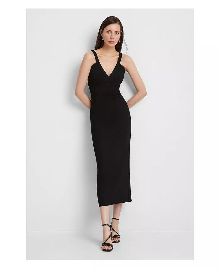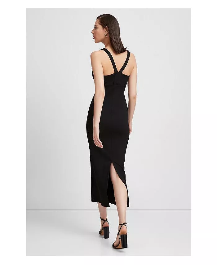Импортный Приталенный, средней эластичности Без рукавов Бретельки-халтер с V-образным вырезом Длинная миди длина Разработано в Нью-Йорке | Изготовлено вручную в Европе Приталенный фасон в области груди, талии и бедер. Длина миди. Силуэт «карандаш». Слегка эластичный