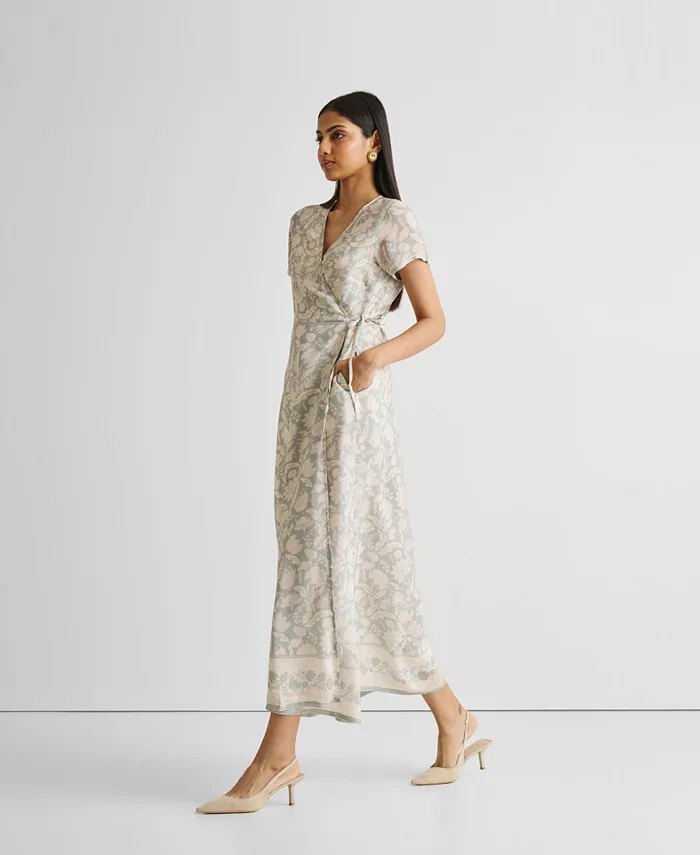 Это шикарное платье-халат, созданное в приглушенных тонах, идеально подойдет для прохладных вечеров и ленивых послеобеденных часов.
