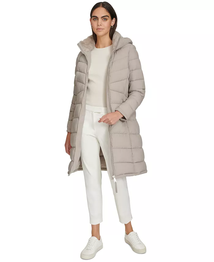 Универсальное стеганое пальто, которое вы сможете носить где угодно. Симпатичная модель средней длины от Calvin Klein дополнена уютной отделкой из искусственного меха на капюшоне.