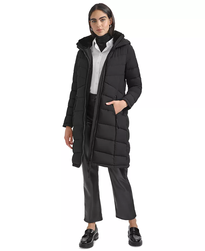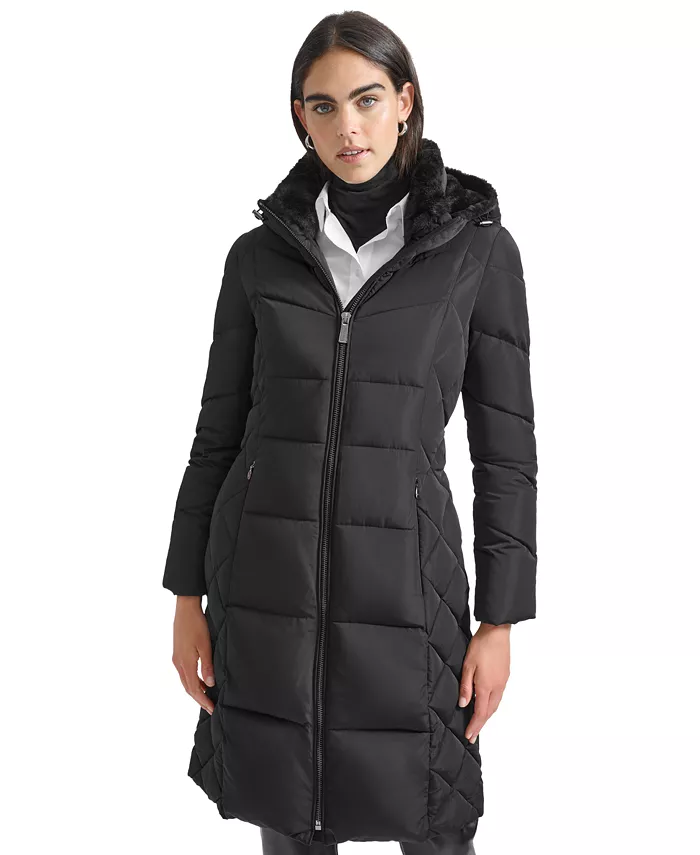 Универсальное стеганое пальто, которое вы сможете носить где угодно. Симпатичная модель средней длины от Calvin Klein дополнена уютной отделкой из искусственного меха на капюшоне.