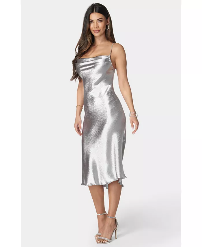 Женское платье bebe из кованого атласа со стразами - воплощение элегантности и гламура. Это потрясающее платье излучает роскошь и изысканность, что делает его идеальным выбором для любого особого случая.