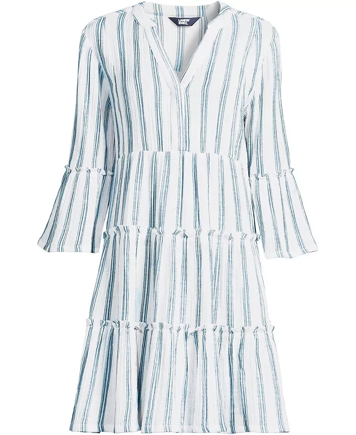 Когда становится жарко, вы будете выглядеть непринужденно, элегантно и комфортно в этом воздушном многоярусном платье. Платье из лёгкого хлопкового газа обеспечивает воздухопроницаемость и свободу движений. Свободный силуэт и пышные рукава – квинтэссенция непринуждённого стиля. Это универсальное платье прекрасно подходит как для повседневных дел, так и для вечерних мероприятий. ПРИМЕЧАНИЕ: Этот фасон более свободный. Если вам больше по душе более облегающий крой, выберите меньший размер.