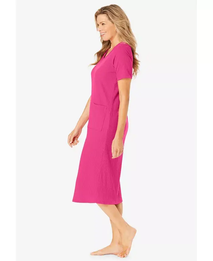 Расслабьтесь по полной в нашей ультра-расслабляющей рубашке для сна в рубчик. Она имеет приятную мягкую текстуру и свободный, удобный крой. V-образный вырез. Накладные карманы. Прямой подол длиной 111 см. Импортный хлопок/спандекс. Машинная стирка.