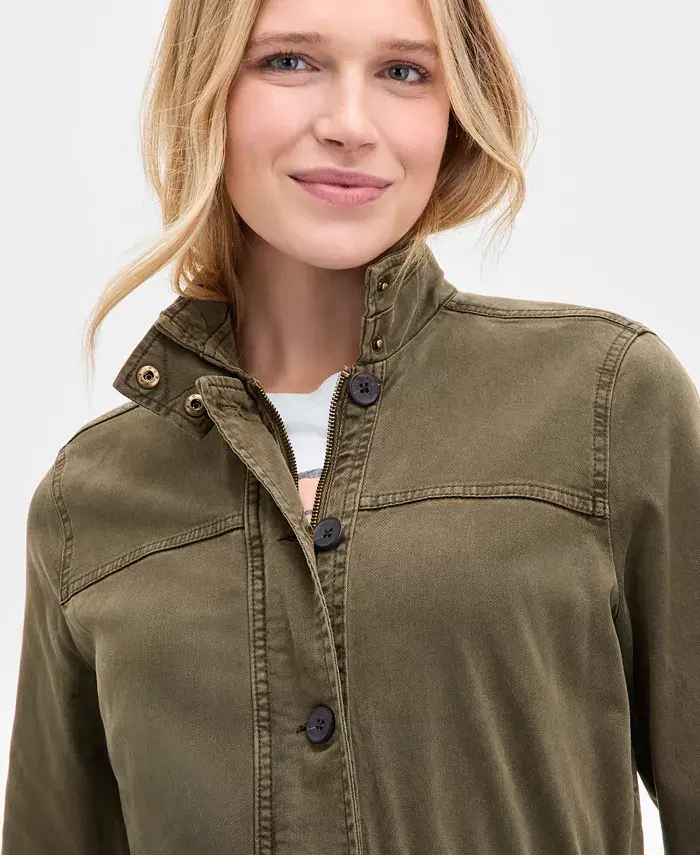Эта практичная куртка от Lucky Brand, столь же функциональная, сколь и стильная, станет незаменимой вещью в вашем повседневном гардеробе. Вдохновленная классическими практичными моделями, эта куртка с приталенной талией, карманами с клапанами на пуговицах и структурированной хлопковой саржей согреет вас. Она немного дерзкая, немного красивая и полностью соответствует духу Lucky Brand.