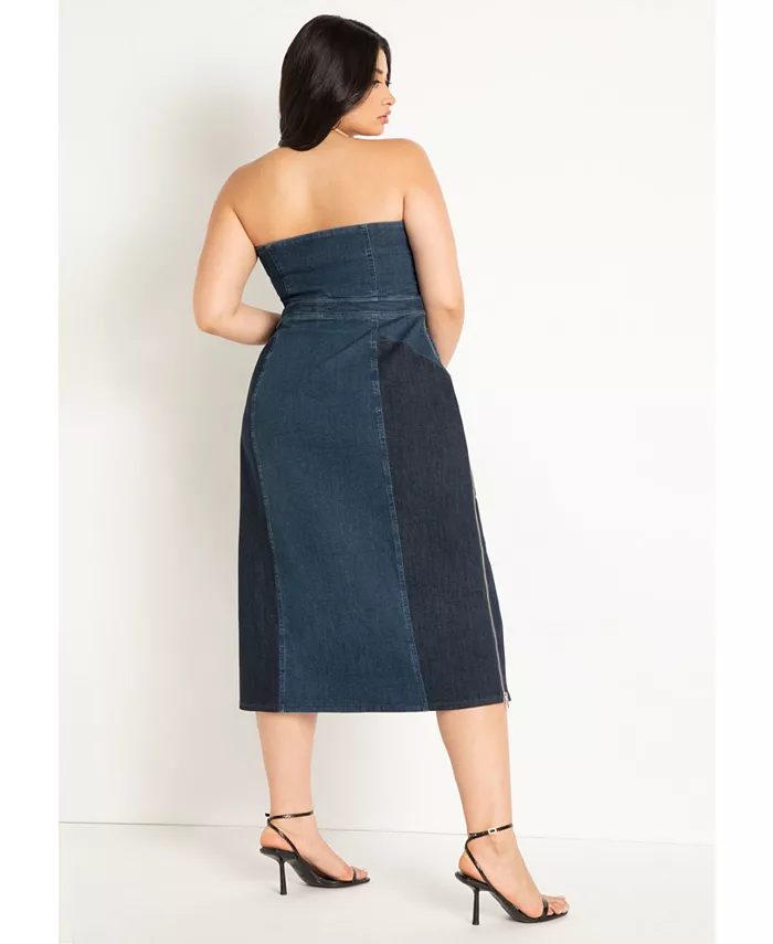 Лиф только на подкладке. Без бретелек. Эластичная резинка на горловине сзади. Длина до икры. Длина изделия для размера 18 - 145 см. Функциональные передние карманы. Эластичный деним: 78,5% хлопок / 20% полиэстер / 1,5%. Машинная стирка в холодной воде на деликатном режиме с похожими цветами. Использовать только отбеливатель без хлора при необходимости. Сушка в стиральной машине при низкой температуре. Гладить при низкой температуре при необходимости.