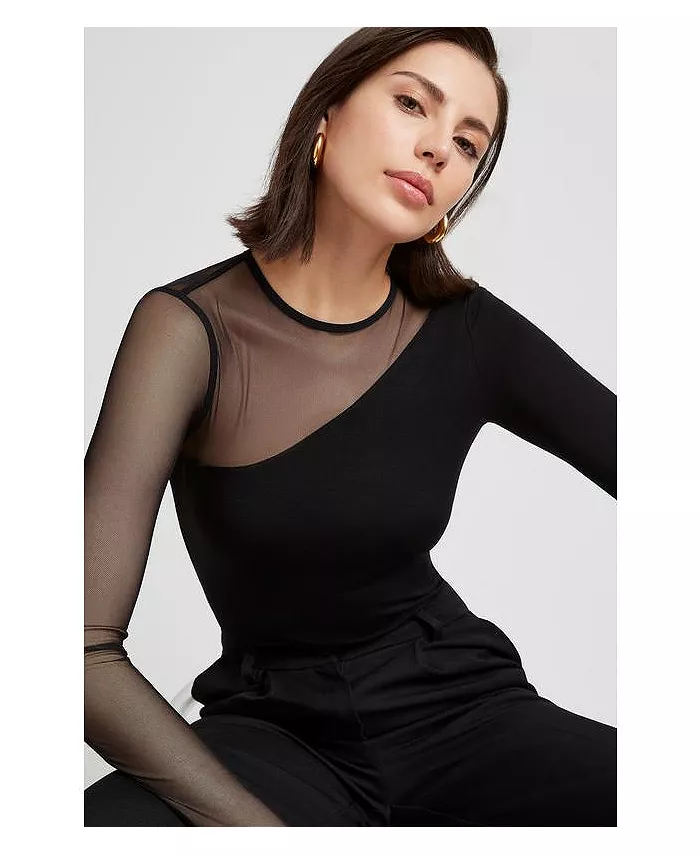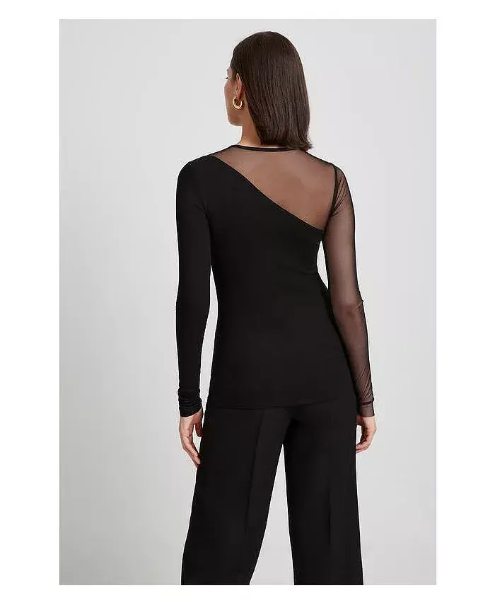 Топ Milo от Marcella воплощает минимализм с ноткой дерзости. Европейский трикотаж сочетается с сеткой в ​​потрясающем асимметричном крое, а один прозрачный рукав визуально приоткрывает тело. Контраст классики и неожиданности позволит вам чувствовать себя готовой к чему угодно - от повседневного до вечернего, от повседневного до элегантного.