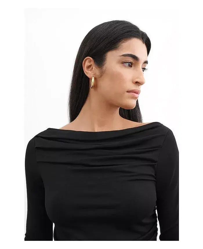 Встречайте топ Cooper от Marcella - нарядный, но не вычурный образ. Изготовленный из высокоэластичного джерси Tencel, он предлагает мягкие складки и сборку по бокам, создавая уникальный драпированный вид спереди и сзади. Широкий вырез-лодочка позволяет носить топ на плечах или с открытыми плечами, создавая отличный вариант как для дневного, так и для вечернего образа.