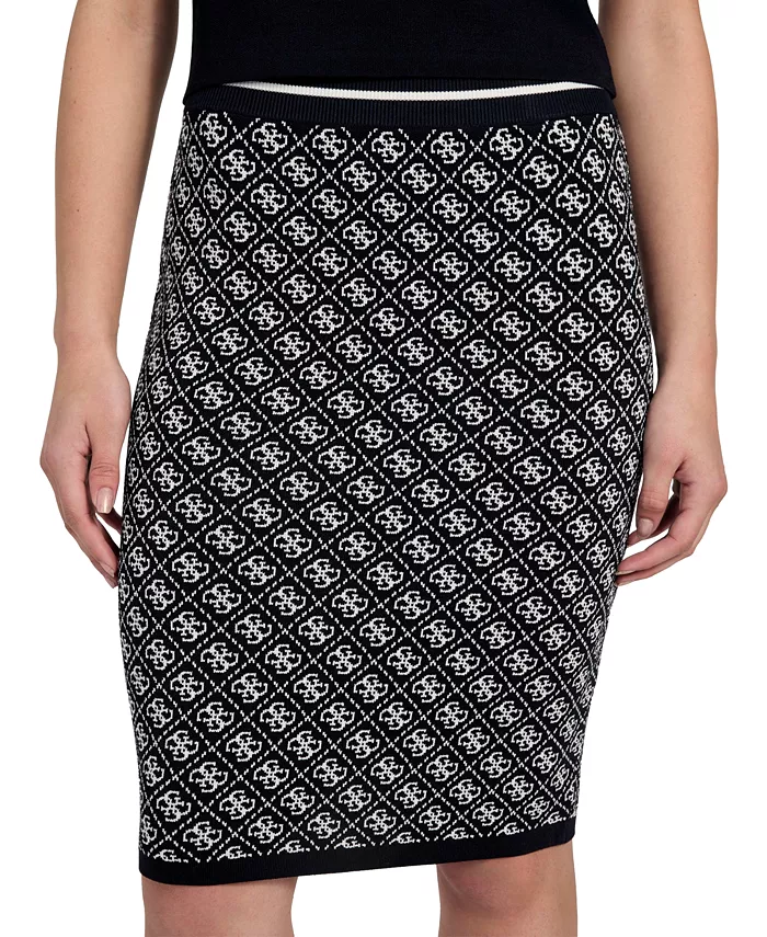 GUESS украшает эту классическую юбку-свитер своим культовым логотипом - воплощение вневременного шика.