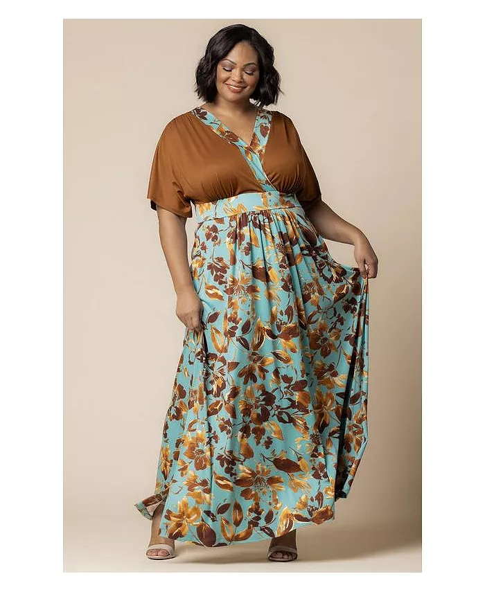 Платье макси Naomi - это длинное платье, подчеркивающее изгибы фигуры, с завышенной талией, V-образным вырезом с контрастной отделкой, струящейся юбкой А-силуэта с принтом и разрезами по бокам. Это платье макси из эластичного трикотажного джерси универсально и подойдет как для повседневного ношения, так и для нарядного образа на полуофициальное мероприятие или в качестве свадебного платья. Доступно в женских размерах plus size.