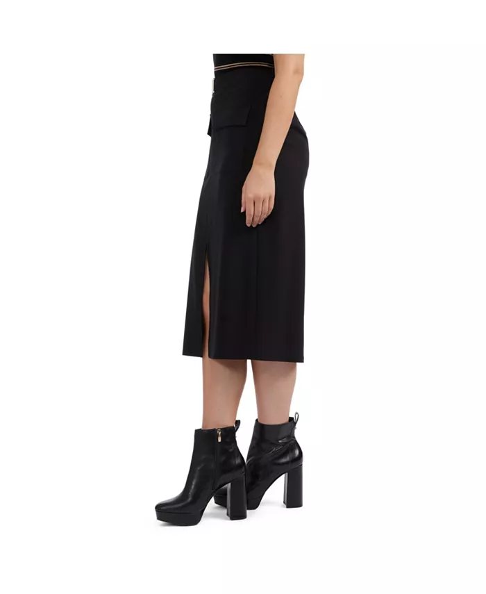 Эта юбка-карандаш с застежкой гармонично сочетает в себе стиль и комфорт. Эластичный пояс обеспечивает гибкость, а металлическая пряжка и разрез спереди придают этой базовой модели изысканность.
