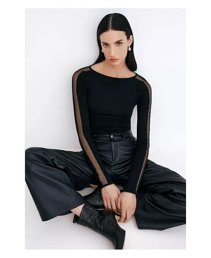 Смелая в своем минимализме и драматичная в своей выразительности, модель Illa Top от Marcella отличается лаконичным силуэтом с вырезом-лодочкой, сшитым из мягкого эластичного европейского трикотажа. Эффектная сетчатая полоска притягивает взгляд по всей длине рукава, придавая модели современный вид, идеально подходящий как для дня, так и для вечера.